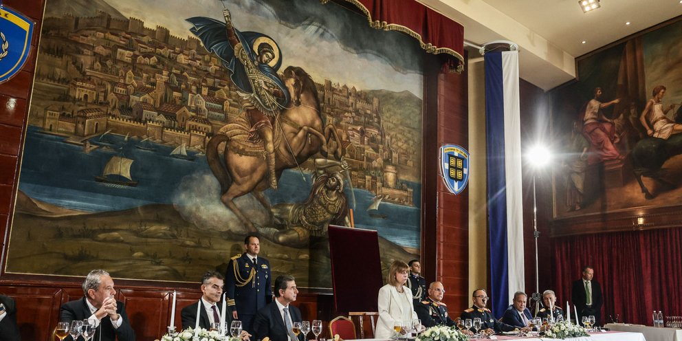 Greece, along with the promotion of its national interests, remains firmly committed to the promotion of peace and dialogue", pointed out the President of the Hellenic Republic, Katerina Sakellaropoulou, who referred to the conflicts in Ukraine and the Middle East, the Cyprus issue and the Greek-Turkish relations, speaking at a dinner hosted in her honour the head of the at the Officers Club of Thessaloniki by the commander of the 3rd Army Corps, Lieutenant General Athanasios Garinis on Saturday.