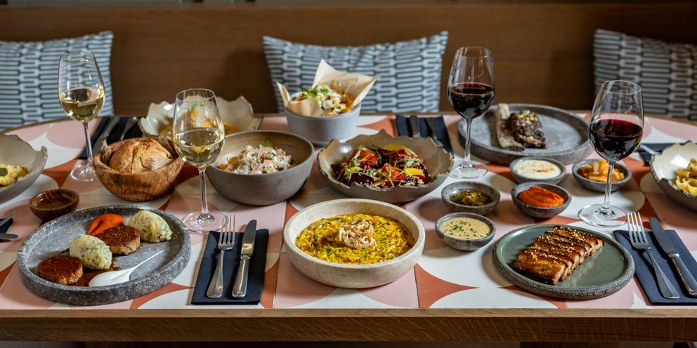 Yphes Eclectic Eatery, located adjacent to the five-star Emerald Hotel Athens, blends refined Mediterranean flavors with a stylish, buzzing atmosphere.