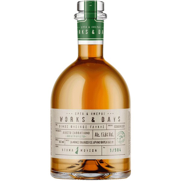 Είναι ένα λιαστό σαββατιανό που μπαίνει για 7 μέρες σε μόλις 984 φιάλες. Ένα γλυκό σαββατιανό απο παλαιά αμπέλια πάνω των 80 ετών και θα δούμε αρώματα από μέλι, τροπικά φρούτα, γλυκό του κουταλιού αχλάδι.