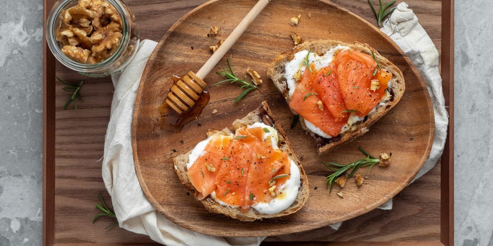 Με προζυμένιο ψωμί και καπνιστό σολομό φτιάχνουμε μπουκιές βαθιάς νοστιμιάς για τους καλεσμένους μας.