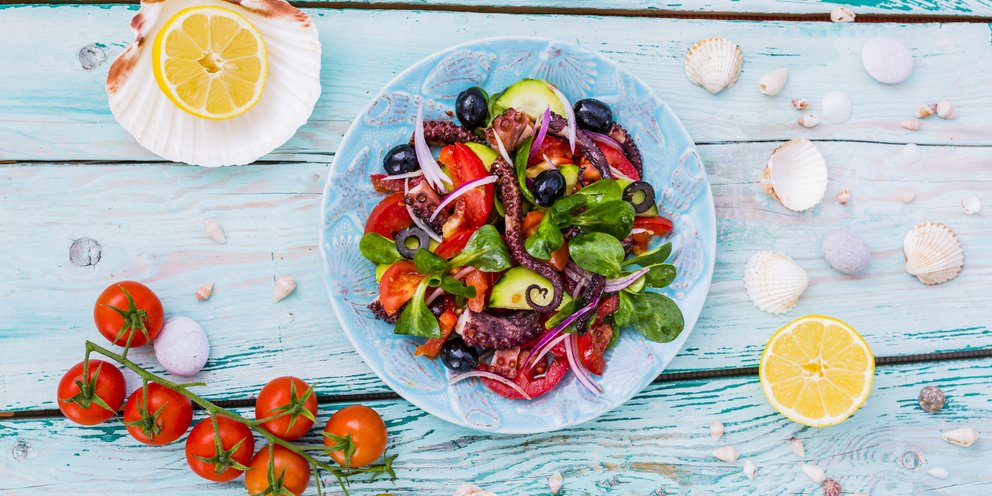 Το ξιδάτο χταπόδι και η χωριάτικη σαλάτα είναι τα πρώτα πράγματα που παραγγέλνουμε όταν καθόμαστε σε μια ταβέρνα τώρα που είναι καλοκαίρι και ειδικά όταν είμαστε διακοπές. Οι λόγοι ευνόητοι: το ένα είναι ο απόλυτος θαλασσινός μεζές της εποχής και η άλλη η σαλάτα που χωρίς αυτήν δεν νοείται θερινή έξοδος για φαγητό. Πώς θα ήταν άραγε αν αυτά τα δύο πιάτα συνδυάζονταν σε μία συνταγή;