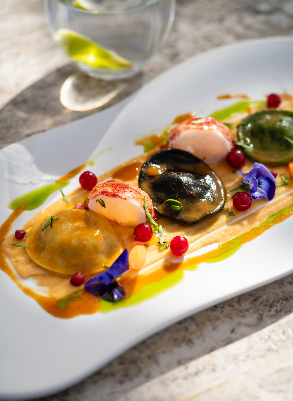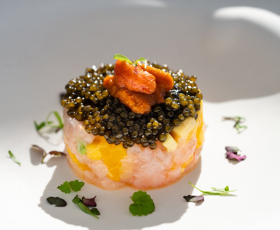 Ένα αισθαντικό welcome με σαμπάνια Veuve Clicquot ή Laurent Perrier Cuvée Rosé και εκλεκτά canapés: τερίνα φουά γκρα, σολομός «Wellington», καρπάτσιο μοσχάρι με τρούφα και λαβράκι sashimi ακολουθούνται από ταρτάρ με καραβίδα, χαβιάρι και αχινό. Η συνέχεια επιβάλλει χτένια Saint Jacques και τριλογία tortelli με αστακό, γαρίδα και καλαμάρι. Ως main course κάνει δυναμική είσοδο το Wagyu beef με fois gras και τρούφα, ενώ για το τέλος η επιτομή της απόλαυσης κρύβεται στο επιδόρπιο Coeur d’ Amour με σοκολάτα Valrhona. Ο executive sommelier προτείνει, βέβαια, τα κατάλληλα wine pairings και cocktails για κάθε γεύση.