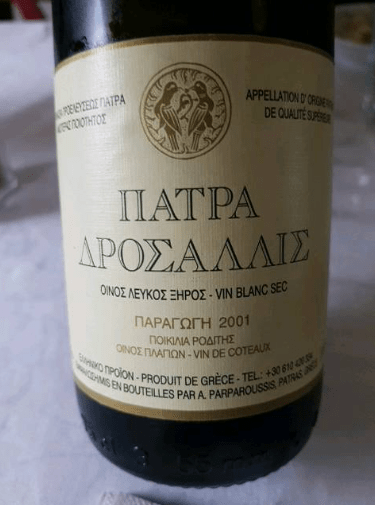 Ενα κτήμα το οποίο παράγει ένα από τα κορυφαία παλαιωμένα αποστάγματα της Ελλάδας. Δροσσαλις στο ποτήρι, Ασύρτικο αλλά από τη Δυτική Αχαΐα. Ανοιχτό χρυσό χρώμα με πράσινες ανταύγειες. Απαλά αρώματα λουλουδιών, κόκκινο πιπέρι, αρώματα φρούτων όπως αχλάδι. Γεμάτο σώμα με φρουτώδεις γεύσεις μάνγκο. Ενα κρασί με σπινθηροβόλα οξύτητα, νότες αλμύρας και ορυκτότητα στην επίγευση. Συνοδεύει πιάτα της Μεσογειακής κουζίνας, ψάρια, καπνιστά, λευκά κρέατα, τυριά.