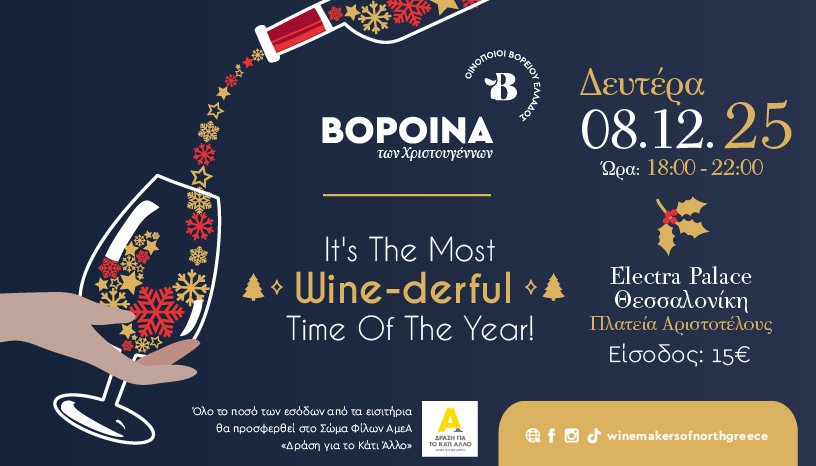 Η εκδήλωση «ΒορΟινά των Χριστουγέννων» πραγματοποιείται από την ένωση «Οινοποιοί Βορείου Ελλάδος» από το 2016, αποκλειστικά για φιλανθρωπικό σκοπό. «Ένα ποτήρι κρασί σε συνδυασμό με το πνεύμα της αγάπης, αποτελούν την ιδανική έναρξη για την Χριστουγεννιάτικη περίοδο. Σας περιμένουμε!», υπογραμμίζεται σε ανακοίνωση των διοργανωτών.