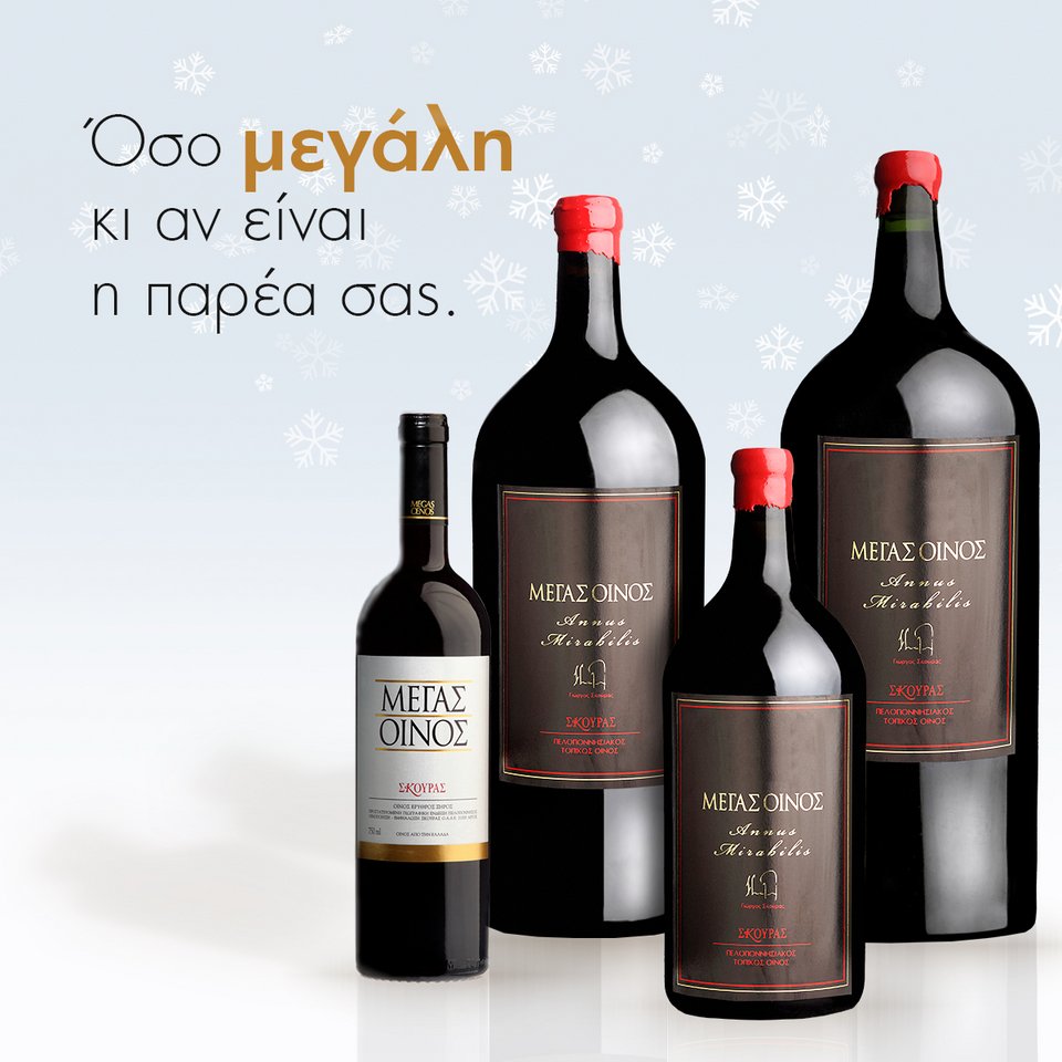 Ο «Μέγας Οίνος» όμως δεν περιορίζει τη φήμη του στην κλασική φιάλη 750ml, αλλά έχει καταφέρει να αντανακλά τη δυναμικότητα της παλαίωσής του σε μεγαλύτερες φιάλες, που εντυπωσιάζουν όχι μόνο εμφανισιακά αλλά και οινικά. Ένα κρασί που υποδηλώνει ότι μπορεί να κρατηθεί περήφανα για πάνω από δύο δεκαετίες στη φιάλη του. Αυτός είναι και ο λόγος που είναι συνώνυμο των Χριστουγέννων, γιατί μπορεί να αποτελέσει ένα σοβαρό δώρο και μία έκπληξη για τους καλεσμένους μας.