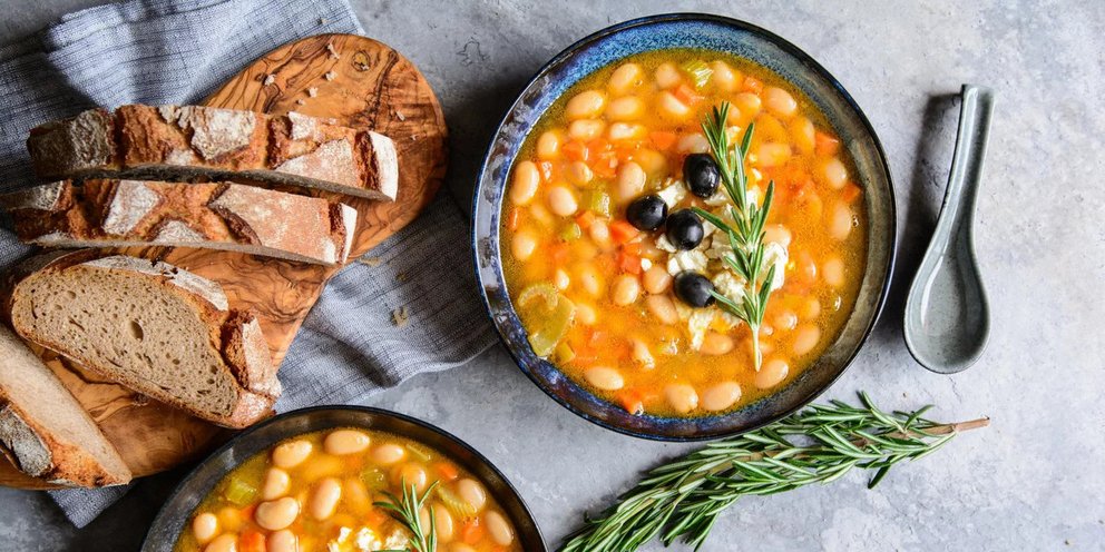 Η εθνική μας οσπριόσουπα, δηλαδή η φασολάδα, στις δύο βασικές εκδοχές της.