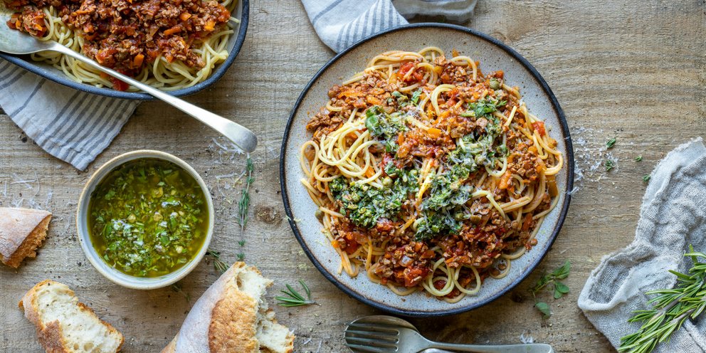 Η σάλτσα μπολονέζ είναι μία και μοναδική στην καρδιά μικρών και μεγάλων. Τα μακαρόνια με κιμά, όπως τα λέμε εμείς οι Έλληνες, είναι ο πιο λαχταριστός και comfort τρόπος να χορτάσουμε την πείνα μας και να ευχαριστηθούμε ένα πιάτο με ζυμαρικά, είτε είμαστε μακαρανάδες είτε όχι. Ωστόσο, το πέστο είναι μια εξίσου αγαπημένη σάλτσα της ιταλικής κουζίνας η οποία έχει τη δική της ξεχωριστή, αρωματική και γευστική χάρη γι αυτό και έχει γίνει διεθνώς δημοφιλής. Τι θα γινόταν άραγε αν αυτές οι δύο πεντανόστιμες σάλτσες συνδυάζονταν στην ίδια συνταγή; Μάλλον κάτι καλό. Όπως άλλωστε λένε και κάποιοι επαγγελματίες μάγειρες «Όταν δυο παρασκευές είναι πεντανόστιμες χωριστά, είναι πεντανόστιμες και μαζί».