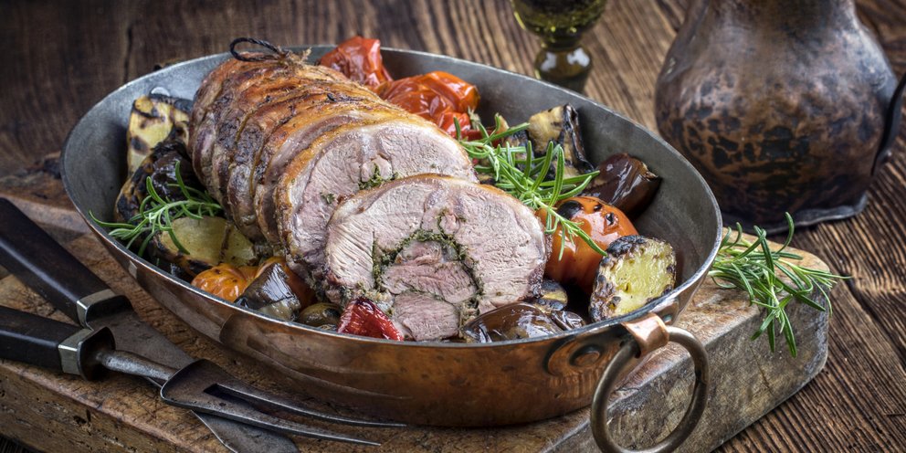 Αρνίσιο ρολό στον φούρνο με γέμιση μυρωδικών
