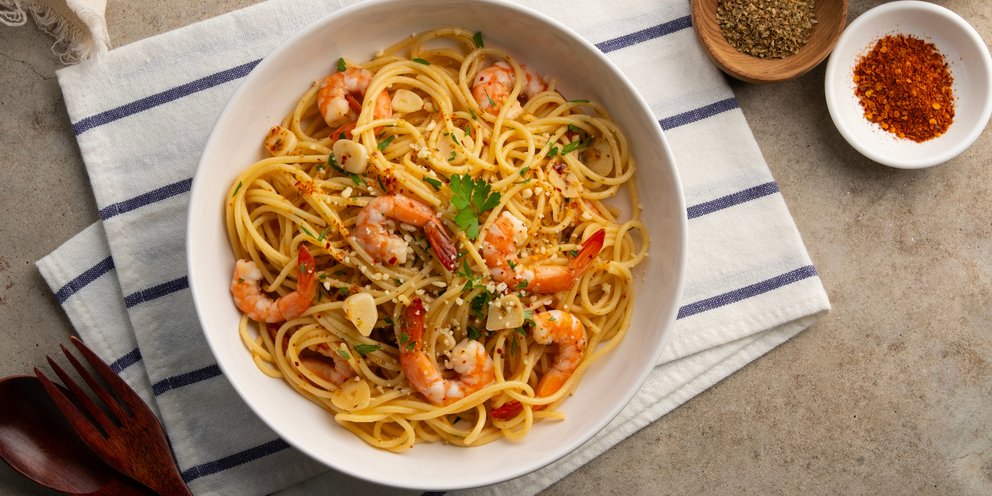 Μετά από τόσα γιορτινά κρεατικά, μια μακαρονάδα με γαρίδες είναι ό,τι πρέπει για να αλλάξουμε διατροφή και διάθεση.