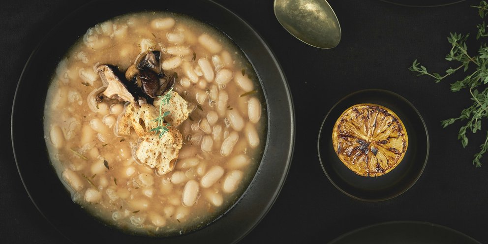 Η βροχή είναι ο τέλειος καιρός για φασολάδα. Αχνιστή, νόστιμη και πλούσια σε πρωτεΐνες και βιταμίνες μας ζεσταίνει και μας χορταίνει με τον πιο θρεπτικό τρόπο. Όμως, όταν οι συνθήκες αλλάζουν από τη μια στιγμή στην άλλη και οι θερμοκρασίες πέφτουν απότομα τις περισσότερες φορές δεν προλαβαίνουμε να οργανωθούμε αναλόγως. Άλλωστε, ένα φαγητό όπως τα φασόλια θέλει εξ ορισμού μπόλικο χρόνο προετοιμασίας και μαγειρέματος. Ευτυχώς, στη μαγειρική υπάρχει πάντα και η σύντομη οδός. Στην προκειμένη, μπορούμε να κερδίσουμε χρόνο χρησιμοποιώντας έτοιμα βρασμένα φασόλια. Έτσι, γλιτώνουμε το μούλιασμα και έχουμε έτοιμη τη φασολάδα μας σε μισή ώρα μόνο. Όσο για το χύλωμα, με τη συνταγή που σας δίνουμε θα βγει το ίδιο βελούδινη με την κλασική, θα έχει ακόμα πιο πλούσια γίηνη γεύση, λόγω των μανιταριών, και επιπλέον θα μοσχοβολάει λεμόνι και θυμάρι.