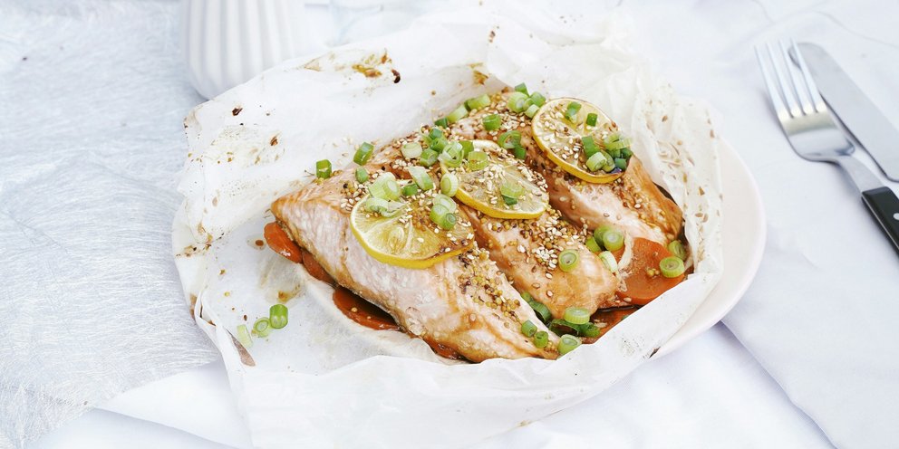 Μπακαλιάρος με λαχανικά στη λαδόκολλα