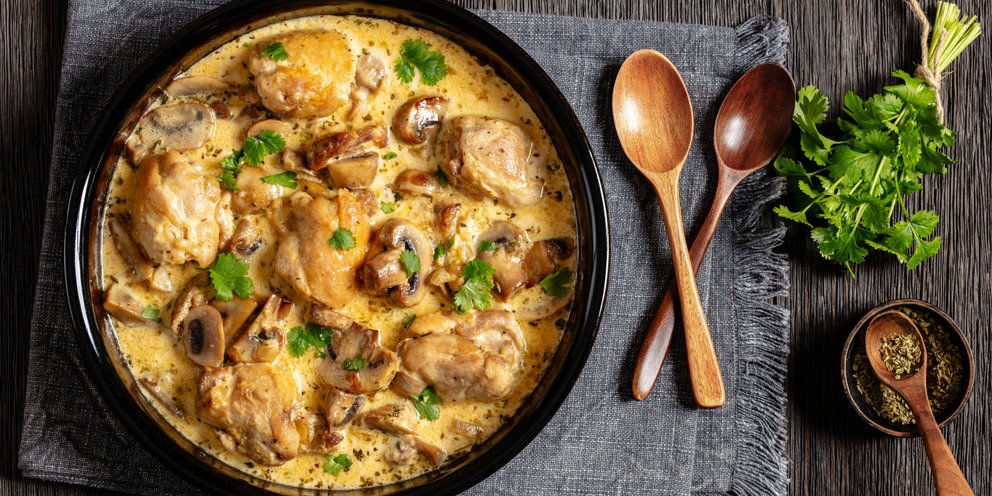 Ακολουθήστε τη συνταγή που σας δίνουμε και απογειώστε τη γεύση με λίγη κρέμα γάλακτος και μανιτάρια. Σε λιγότερο από μισή ώρα θα έχετε ένα πεντανόστιμο φαγητό που θα ξετρελάνει μικρούς και μεγάλους, ειδικά αν φτιάξετε μαζί κι ένα βουνό αφράτο λευκό πιλάφι ή μια πιατέλα χρυσαφένιες τηγανητές πατάτες!