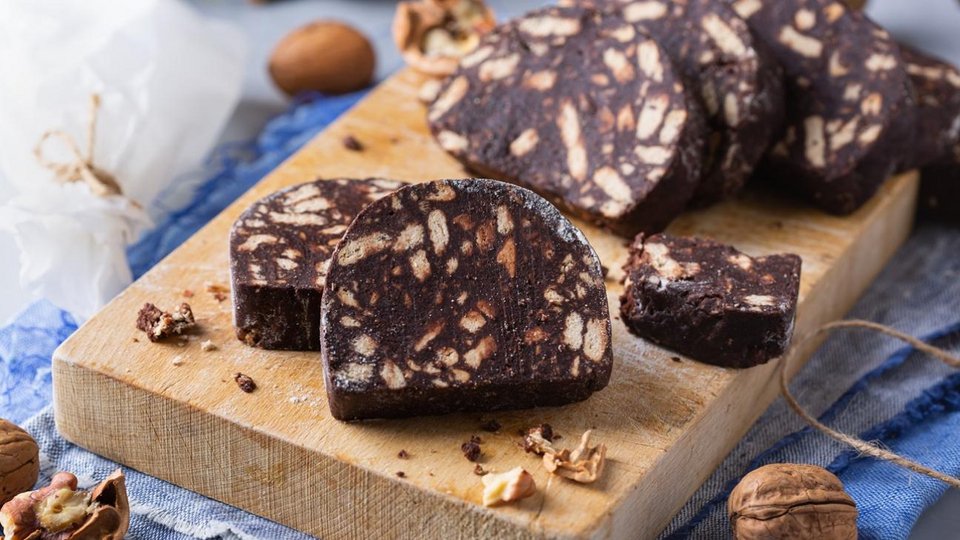 Με λαμπροκούλουρα από την πασχαλινή πιατέλα και πλούσια σοκολάτα κουβερτούρα φτιάχνουμε, σε λιγότερο από μισή ώρα, έναν λαχταριστό κορμό ψυγείου.