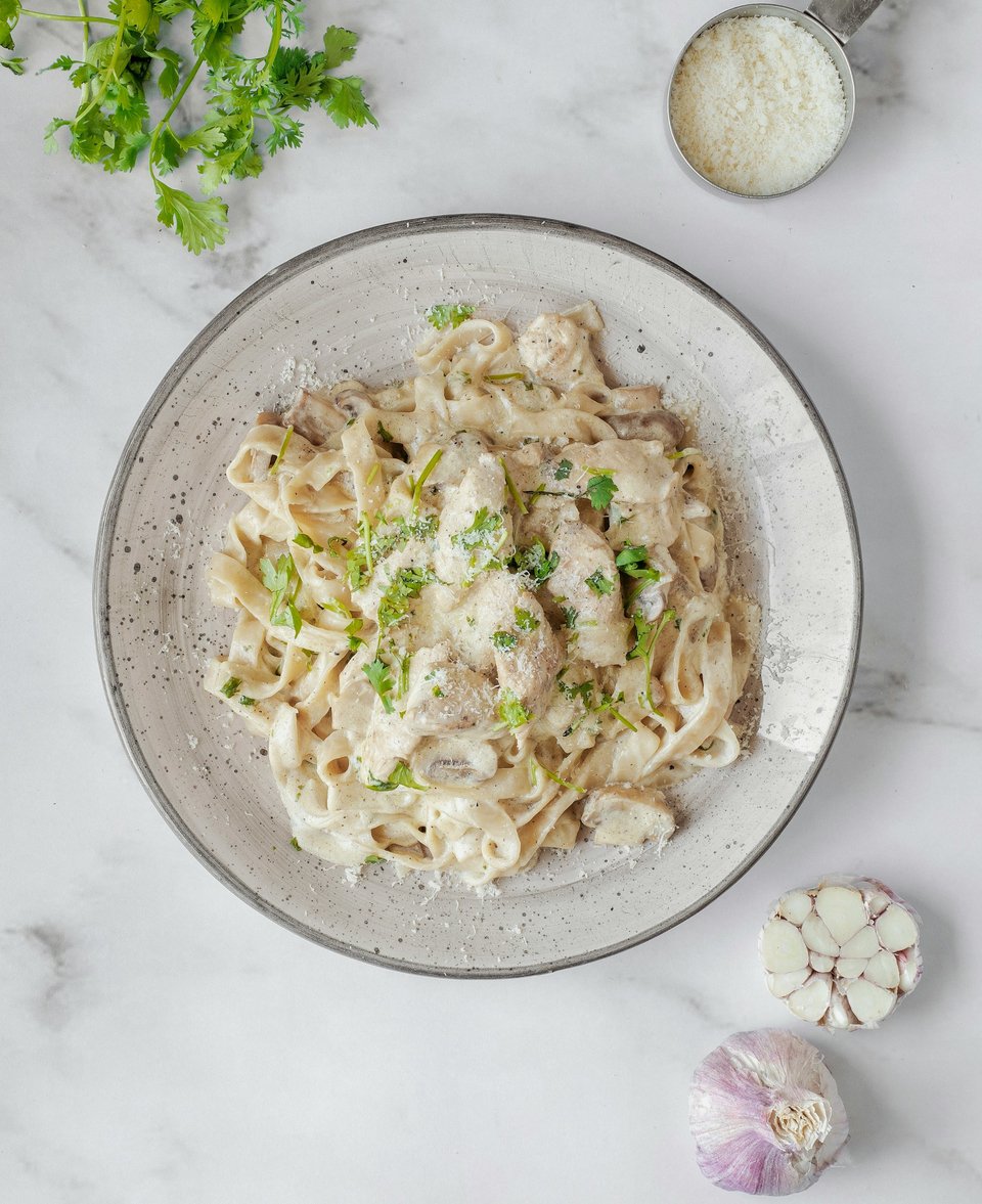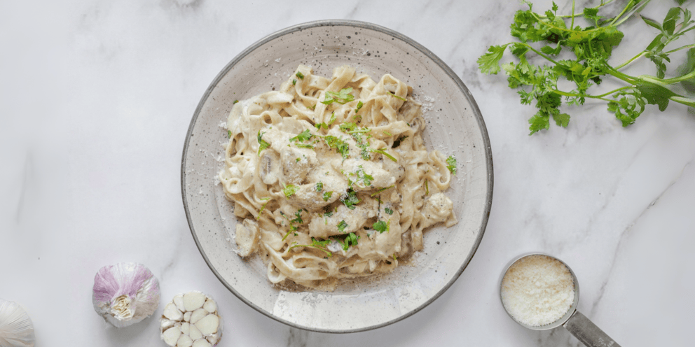 Χωρίς αυγά, κρέμα γάλακτος και βούτυρο, φτιάχνουμε μια πεντανόστιμη και χορταστική μακαρονάδα με πλούσια λευκή σάλτσα, πολύ πιο ελαφριά όμως από τις κλασικές.