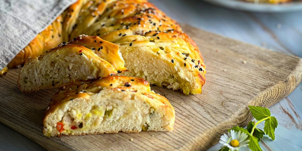 Με αλεύρι χωρίς γλουτένη και μπόλικη φέτα φτιάχνουμε πεντανόστιμο και χορταστικό τυρόψωμο.