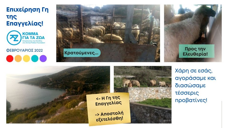 To «Κόμμα για τα Ζώα» αγόρασε τέσσερις προβατίνες από κτηνοτρόφο της Αττικής και... τις απελευθέρωσε σε καταφύγιο στην Εύβοια.