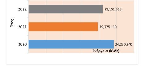 Το 2022 η παραγωγή ενέργειας ανήλθε σε 3.280.226 kWh, στα ίδια επίπεδα με το 2021.