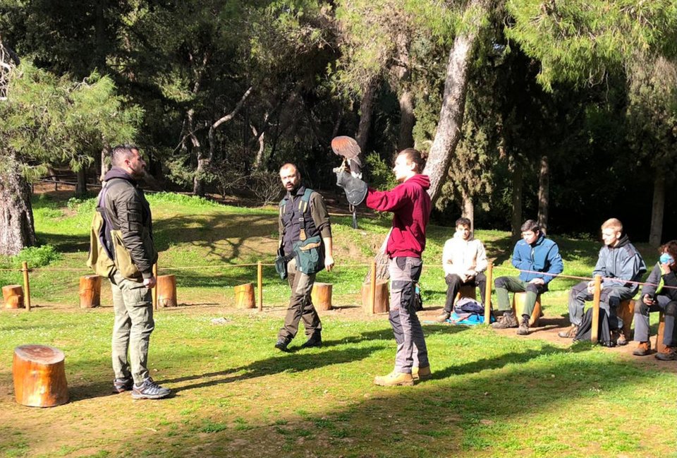 Φοιτητές της γαλλικής σχολής δασοφυλάκων επισκέφτηκαν τον Βοτανικό Κήπο Χαϊδαρίου, προκειμένου να εκπαιδευτούν για θέματα αρπακτικών πτηνών.