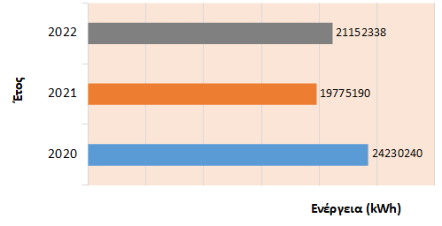 Το 2022, η παραγωγή ενέργειας ανήλθε σε 3.280.226 kWh, στα ίδια επίπεδα με το έτος 2021.