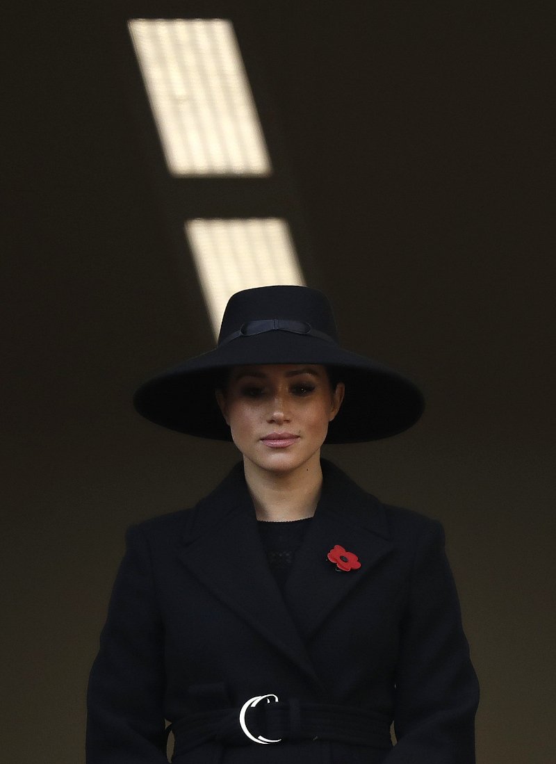 Η Μέγκαν Μαρκλ εμφανίστηκε στην επέτειο της «Ημέρας μνήμης» της Βρετανίας για τους νεκρούς του Α' Παγκοσμίου Πολέμου, με ένα μαύρο σύνολο και μια κόκκινη παπαρούνα στο πέτο, όπως αρμόζει στην περίσταση.