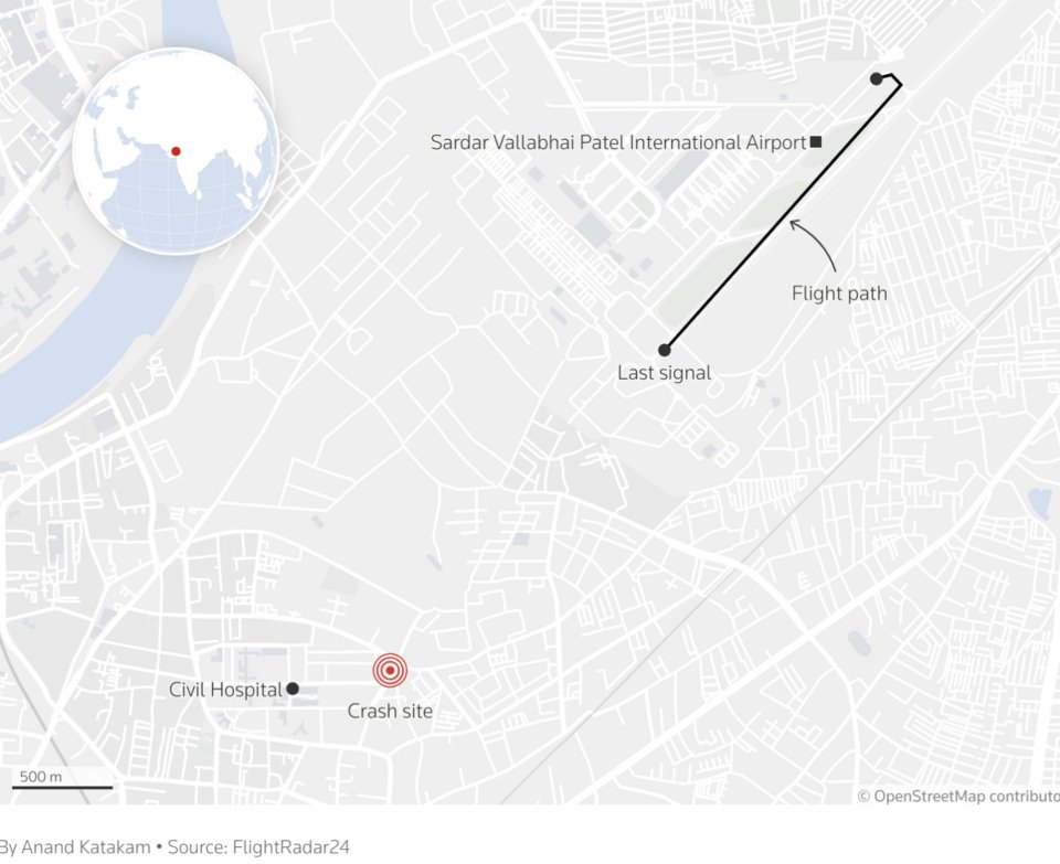 Το αεροσκάφος συνετρίβη στην κατοικημένη περιοχή Meghani Nagar πέντε λεπτά μετά την απογείωσή της (1:38 μ.μ. τοπική ώρα) δήλωσε στο Associated Press ο Faiz Ahmed Kidwai, γενικός διευθυντής της διεύθυνσης πολιτικής αεροπορίας.