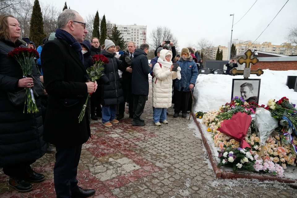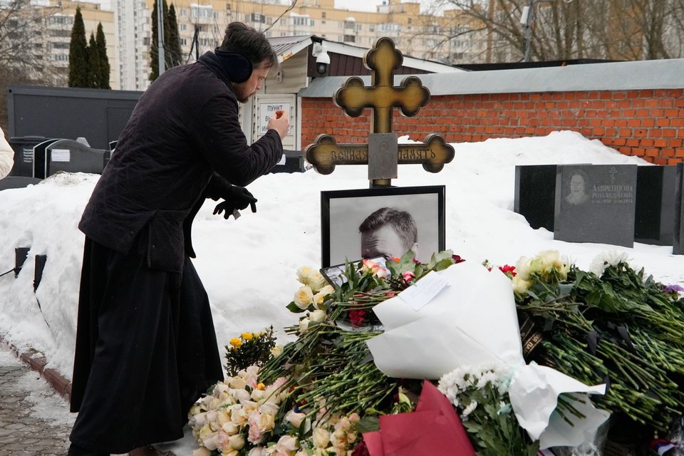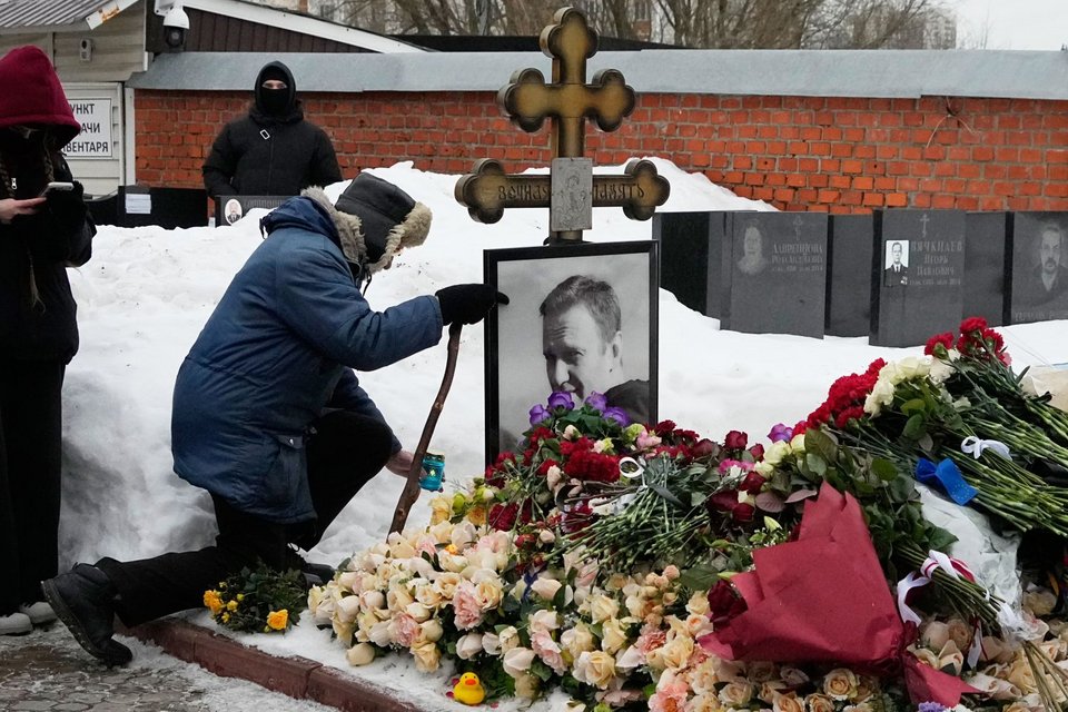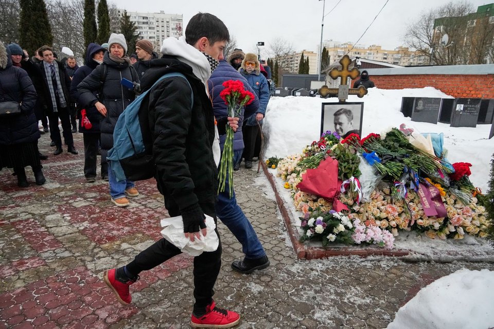 Οι άνθρωποι μπορούν να καταθέσουν λουλούδια στο Κοιμητήριο Μπορισόφσκογε της Μόσχας, όπου βρίσκεται ο τάφος του Ναβάλνι. Οι συγκεντρώσεις απαγορεύονται στη Ρωσία.