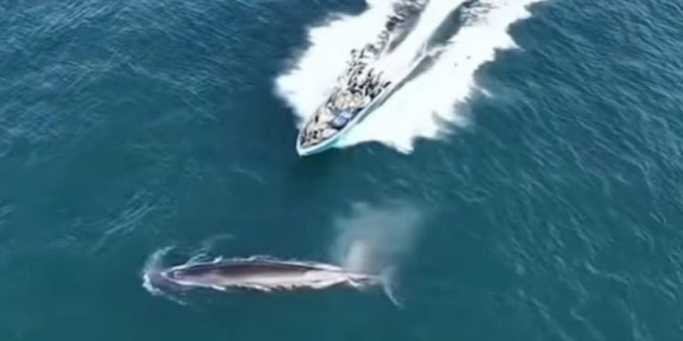 Βίντεο από drone που κατέγραψαν τουρίστες στις 7 Φεβρουαρίου δείχνει τη φάλαινα να αναδύεται επανειλημμένα για να αναπνεύσει, ενώ σκάφη παρατήρησης φαλαινών κρατούσαν απόσταση.