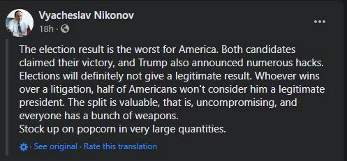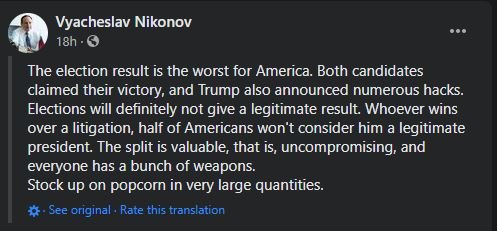 «Οποιος και να κερδίσει τις νομικές μάχες, οι μισοί Αμερικανοί δεν θα τον θεωρεί νόμιμο πρόεδρο. Ας προμηθευτούμε μεγάλες ποσότητες από πόπ κορν».