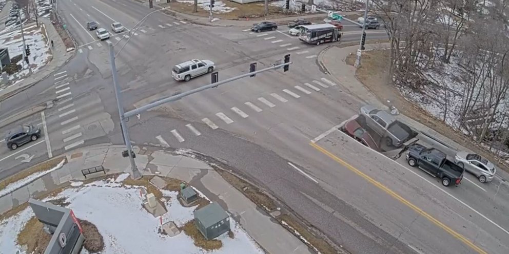 Νεμπράσκα: Η στιγμή που η τρύπα «κατάπιε» τα δύο αυτοκίνητα, έξω από το Πανεπιστήμιο