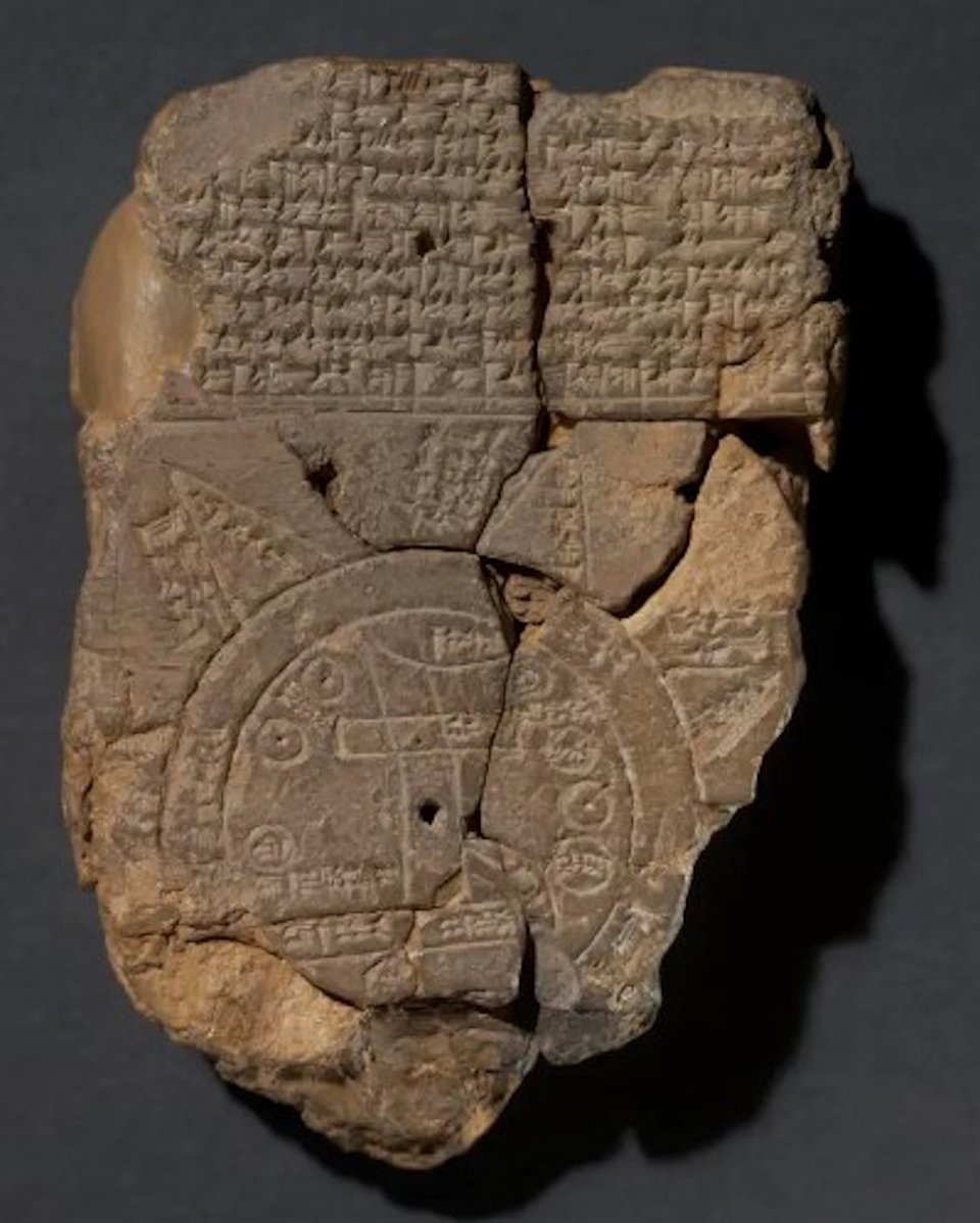 Η πλάκα από τον 6ο αιώνα π.Χ. δείχνει έναν χάρτη της Μεσοποταμίας -περίπου εκεί όπου βρίσκεται το σημερινό Ιράκ- και τι πίστευαν οι Βαβυλώνιοι ότι βρισκόταν πέρα από τον τότε γνωστό κόσμο. Το αρχαίο τεχνούργημα, που ανακαλύφθηκε στη Μέση Ανατολή, αποκτήθηκε από το Βρετανικό Μουσείο το 1882, αλλά παρέμεινε ένα μυστήριο μέχρι πρόσφατα που οι επιμελητές βρήκαν ένα τμήμα που έλειπε και μετέγραψαν τη σφηνοειδή γραφή του.