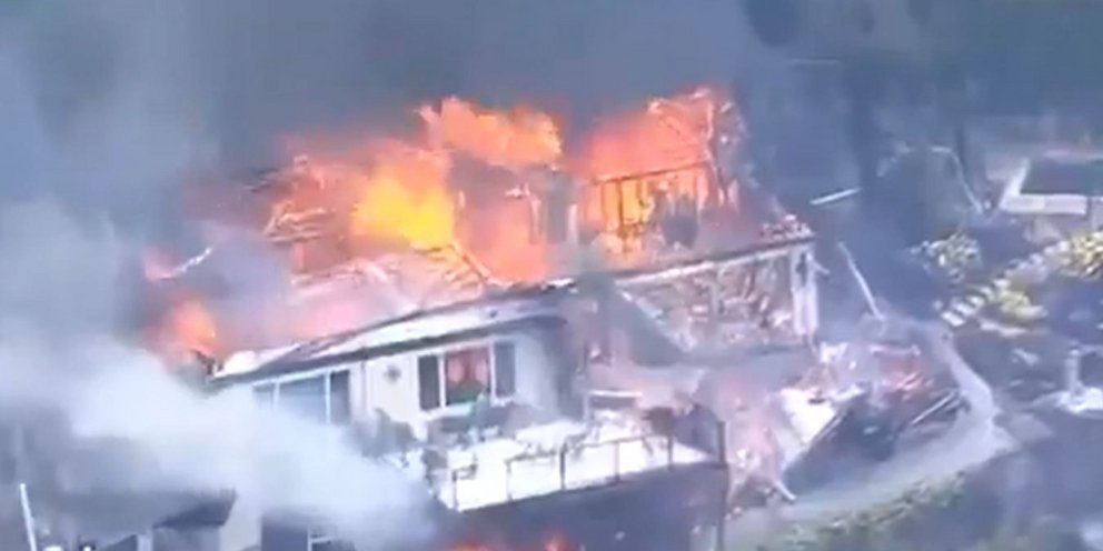 Έως και 16 σπίτια καταστράφηκαν καθώς οι φωτιές μαίνονται στην περιοχή, μετέδωσε το δίκτυο Australian Broadcasting Corp.
