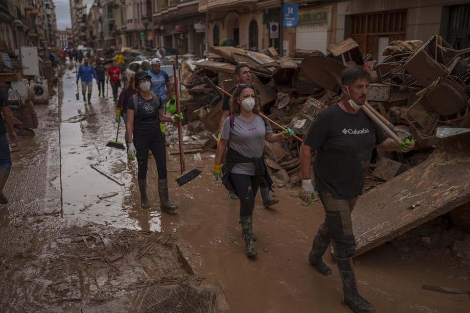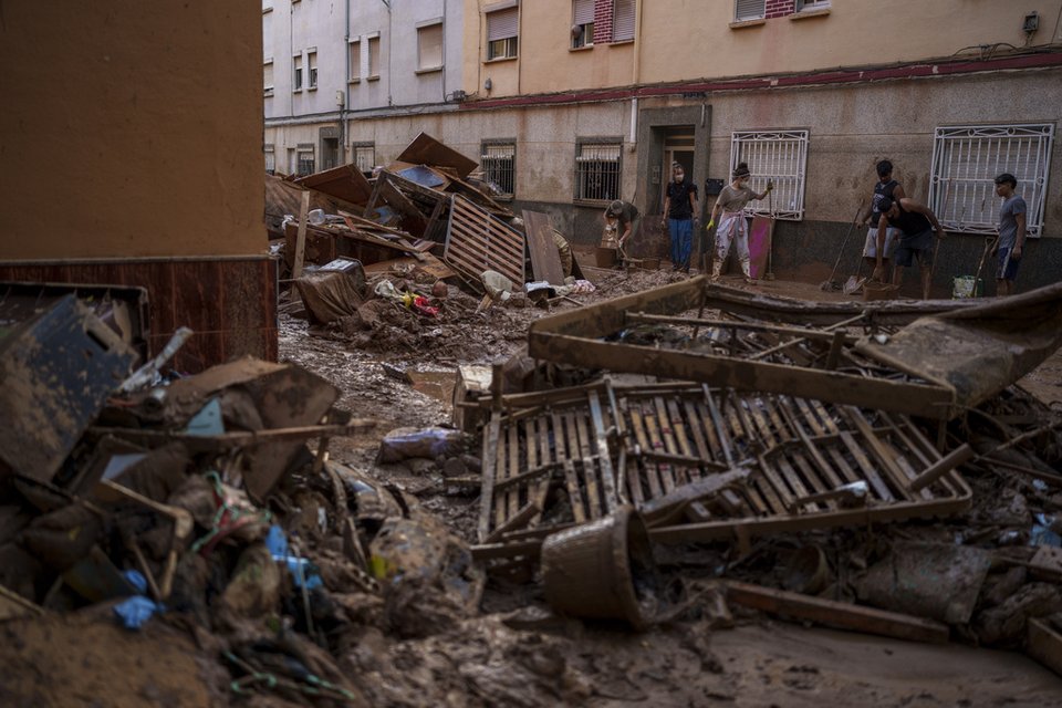 Η περιοχή της Βαλένθια σχεδόν μία εβδομάδα από το χτύπημα της κακοκαιρίας μοιάζει με βομβαρδισμένο τοπίο, καλυμμένο με λάσπη.