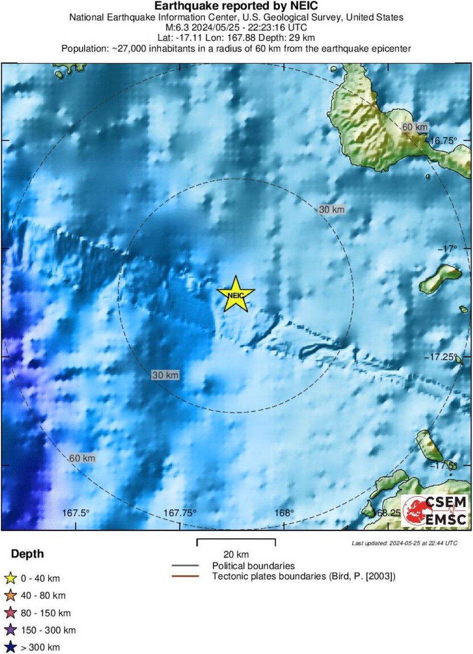 Το επίκεντρο του σεισμού εντοπίζεται περίπου 83 χιλιόμετρα βορειοδυτικά της πρωτεύουσας Πορτ Βίλα και το εστιακό βάθος υπολογίζεται σε 29 χιλιόμετρα.