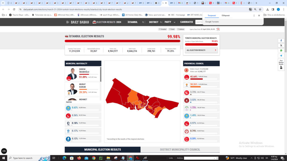 Σύμφωνα με τα αποτελέσματα, με καταμετρημένο το 99,98% των ψήφων o Ιμάμογλου είναι ο μεγάλος νικητής.
