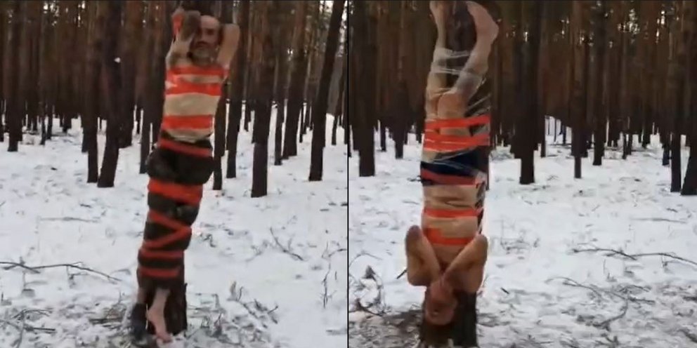 Στο υλικό, που έχει προκαλέσει έντονες αντιδράσεις, διακρίνονται δύο στρατιώτες δεμένοι με ταινία σε δέντρα, ο ένας μάλιστα ανάποδα, μέσα σε χιονισμένο δάσος και σε θερμοκρασίες που εκτιμάται ότι αγγίζουν τους -20 βαθμούς Κελσίου , ως τιμωρία για άρνηση συμμετοχής σε επιθέσεις ή για πειθαρχικά παραπτώματα σε μέτωπα της Ουκρανίας.