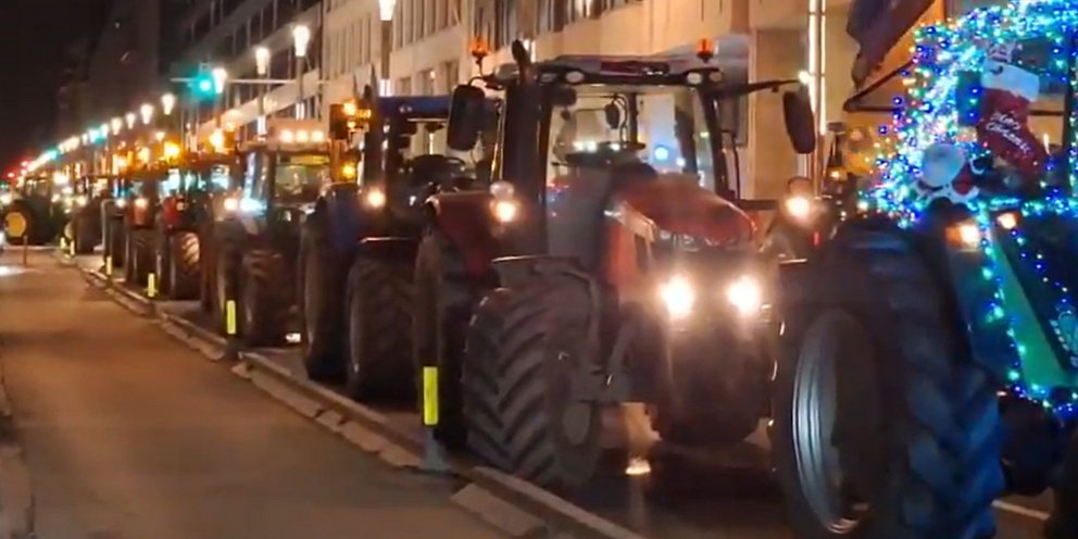 Εκατοντάδες τρακτέρ έκαναν αιφνιδιαστική εμφάνιση στους δρόμους των Βρυξελλών, προκαλώντας σοβαρά κυκλοφοριακά προβλήματα και αναστάτωση γύρω από το Ευρωπαϊκό Συμβούλιο.