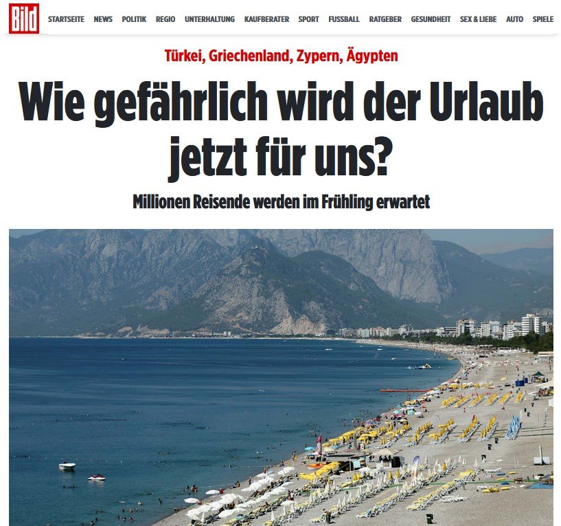 Η «Bild» εξετάζει σε δημοσίευμά της κατά πόσον θα επηρεαστεί η ασφάλεια των Γερμανών τουριστών στην Ανατολική Μεσόγειο από τον πόλεμο στο Ιράν και τις εξελίξεις στη Μέση Ανατολή.