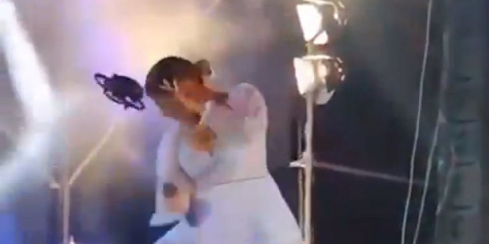 Στις εικόνες αποτυπώνεται η στιγμή κατά την οποία το drone, που κατέγραφε πλάνα της συναυλίας στο Τσικλάγιο του Περού., πέφτει πάνω στην τραγουδίστρια Σουζάνα Αλβαράδο του συγκροτήματος Corazón Serrano.