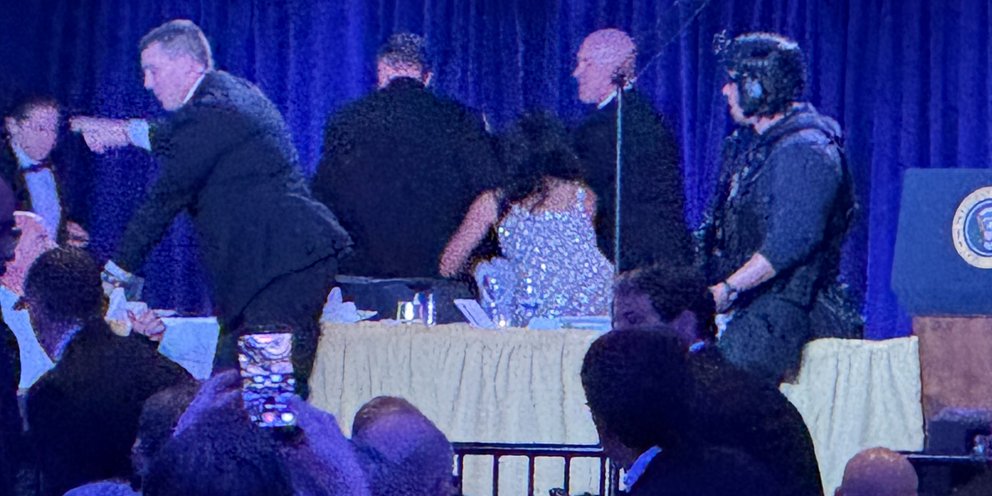 Νέο βίντεο δείχνει την στιγμή λίγα λεπτά μετά τους πυροβολισμούς, που πράκτορες των υπηρεσιών ασφαλείας μπαίνουν στην αίθουσα του δείπνου και φυγαδεύουν εσπευσμένα τον Πρόεδρο και τον Αντιπρόεδρο των ΗΠΑ, με τις συζύγους τους.