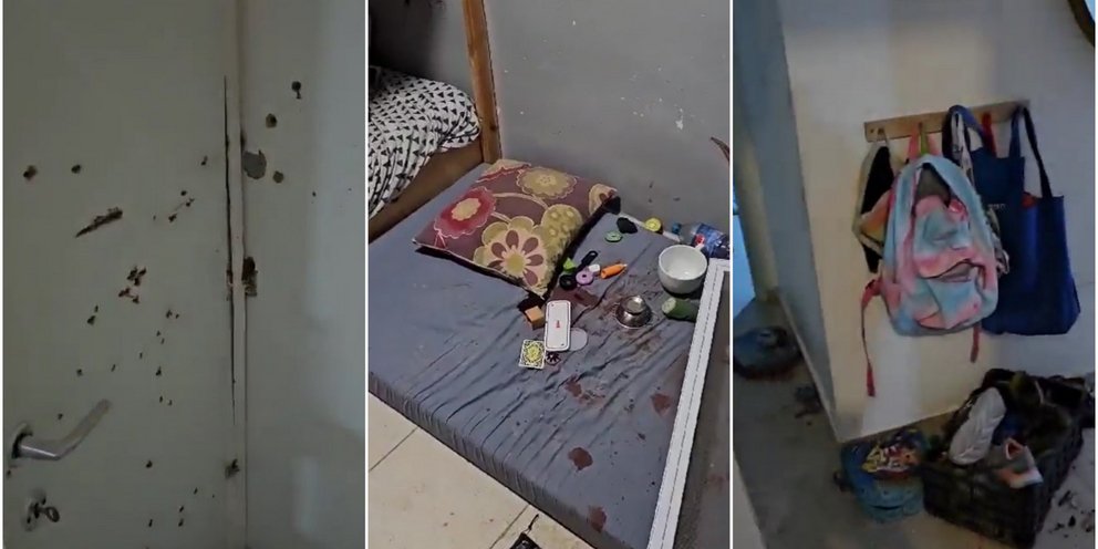 Στο σοκαριστικό βίντεο που έδωσε στη δημοσιότητα το ισραηλινό υπουργείο Εξωτερικών αποτυπώνονται οι φρικαλεότητες που προκάλεσαν οι τρομοκράτες της Χαμάς. Στο βίντεο διάρκειας ενός λεπτού μέσα από σπίτι στο κιμπούτς Κφαρ Αζά τα πάντα έχουν βαφτεί με αίμα. Οι τοίχοι είναι γαζωμένοι από τις σφαίρες, ακόμη και αυτοί στα παιδικά δωμάτια.