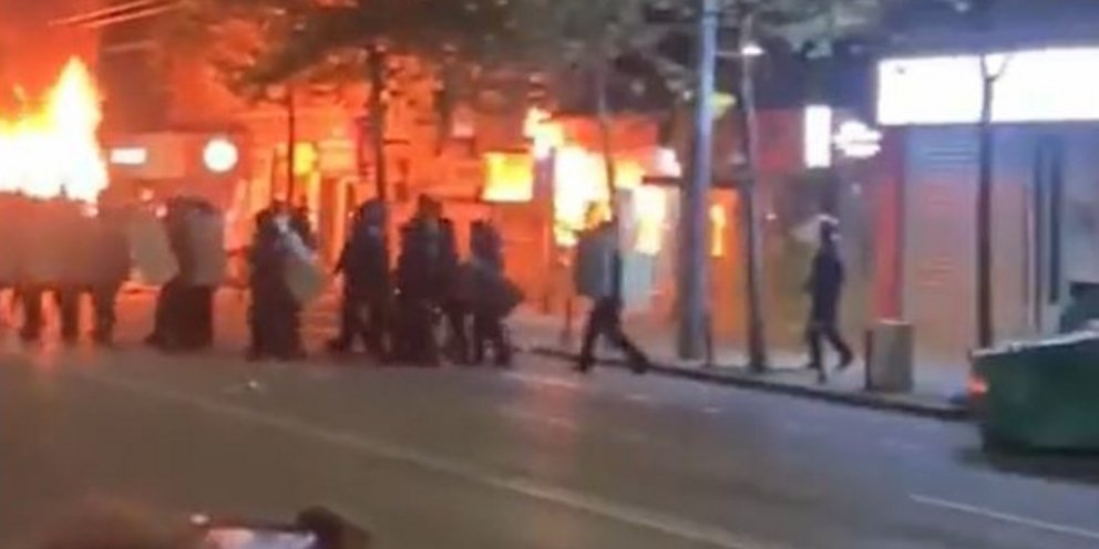 Κροτίδες, μπουκάλια ακόμα και πέτρες χρησιμοποίησαν οι αφηνιασμένοι διαδηλωτές, οι οποίοι πυρπόλησαν και αστυνομικό όχημα, περιστατικά που είναι σπάνια σε αυτή τη βαλκανική χώρα. Ορισμένοι από τους χούλιγκανς, κατάφεραν μάλιστα να κλέψουν και αστυνομικό εξοπλισμό.