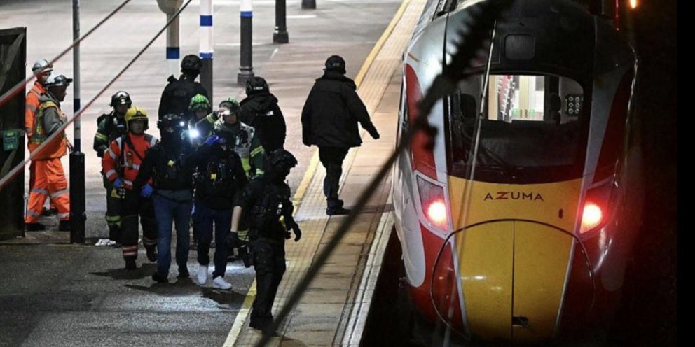Σε βίντεο που κοινοποιήθηκαν σε πλατφόρμες κοινωνικής δικτύωσης διακρίνονται πάνοπλοι αστυνομικοί να μπαίνουν στο τρένο. Αυτόπτης μάρτυρας δήλωσε στο Sky News ότι ένας άνδρας που κρατούσε μαχαίρι ακινητοποιήθηκε από αστυνομικό που χρησιμοποίησε όπλο ηλεκτρικής εκκένωσης (taser).