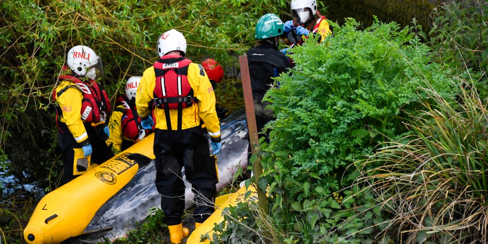 Οι Βρετανοί διασώστες απελευθέρωσαν μια νεαρή φάλαινα, που είχε αποκλειστεί στον Τάμεση, όμως εκείνη δεν κατάφερε να φύγει, καθώς ανέβηκε ξανά τον ποταμό, αντί να βγει στα ανοικτά.