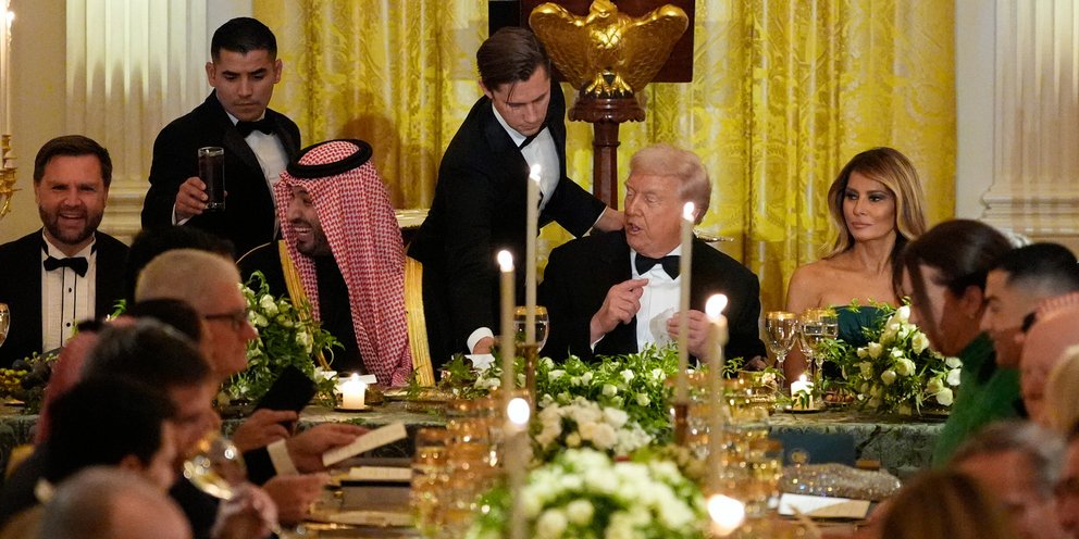 Ένα λαμπερό δείπνο παρέθεσε το βράδυ της Τρίτης ο πρόεδρος Ντόναλντ Τραμπ στον Λευκό Οίκο προς τιμήν του πρίγκιπα διαδόχου της Σαουδικής Αραβίας, Μοχάμεντ μπιν Σαλμάν.