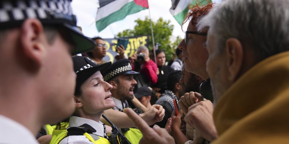 Η αστυνομία του Λονδίνου συνέλαβε δεκάδες υποστηρικτές απαγορευμένης φιλοπαλαιστινιακής οργάνωσης, οι οποίοι διαδήλωσαν παρά τα αιτήματα να ματαιώσουν τη διαμαρτυρία τους μετά τη θανάσιμη επίθεση σε συναγωγή στο Μάντσεστερ.