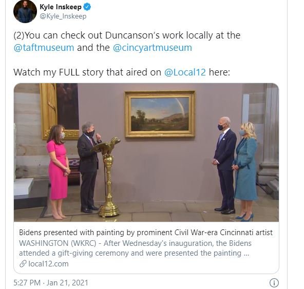 Μεγάλο πίνακα του Ρόμπερτ Σ. Ντάνκανσον (Robert S. Duncanson) παρουσίασε ο Ρεπουμπλικανός γερουσιαστής του Μιζούρι, Ρόι Μπλαντ, στον Τζο Μπάιντεν, κατά την τελετή ορκωμοσίας του.