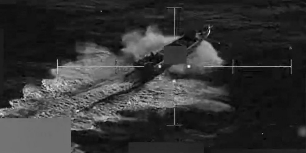 Το μεικτό διοικητήριο των αμερικανικών ενόπλων δυνάμεων που είναι αρμόδιο για τη νότια Αμερική (SOUTHCOM, «νότια διοίκηση») ανέφερε μέσω X πως υπήρχαν «πληροφορίες» πως το σκάφος αυτό «μετέφερε ναρκωτικά» και πρόσθεσε πως σκοτώθηκαν «συνολικά τέσσερις άρρενες ναρκωτρομοκράτες» --χωρίς να παρουσιάσει κάποια απόδειξη για τους ισχυρισμούς αυτούς-- δημοσιοποιώντας αποχαρακτηρισμένο βίντεο του πλήγματος, διάρκειας 15 δευτερολέπτων.