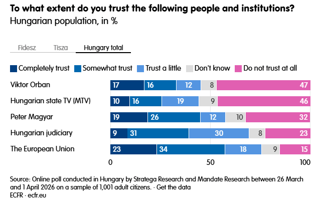 Η έρευνα, που διεξήχθη από το think tank European Council on Foreign Relations (ECFR), διαπίστωσε ότι το 77% των ψηφοφόρων υποστηρίζει την ένταξη στην ΕΕ, το 57% των ερωτηθέντων «εμπιστεύονται» την Ένωση και το 68% επιθυμεί τουλάχιστον κάποια αλλαγή στη σχέση της Ουγγαρίας με την ΕΕ.