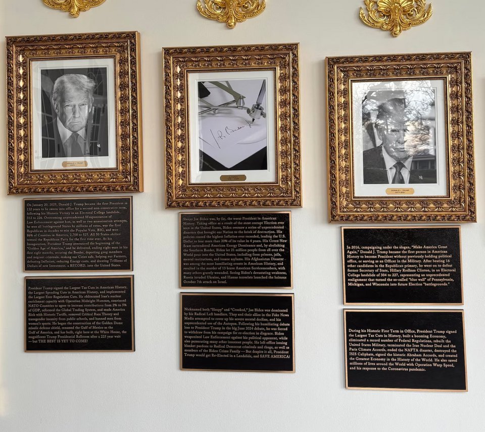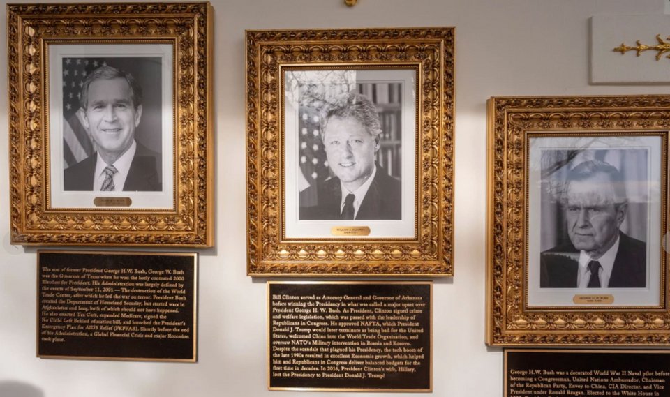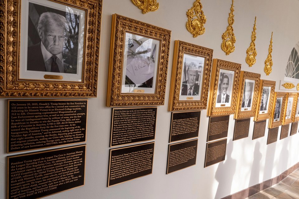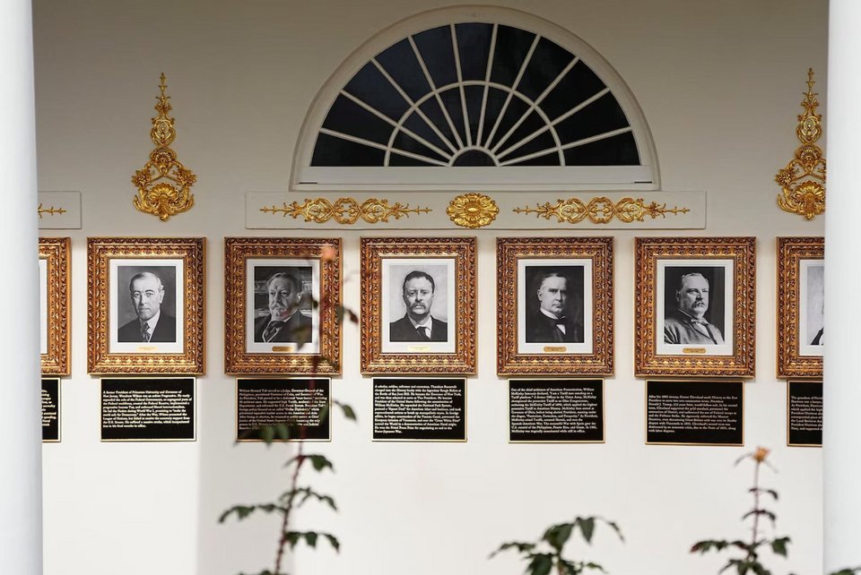 Αφότου επέστρεψε στην εξουσία την 20ή Ιανουαρίου, ο Ντόναλντ Τραμπ μεταμορφώνει το κτίριο της προεδρίας κατά τα γούστα του. Διέταξε να κατεδαφιστεί τμήμα του για να ανεγερθεί πελώρια αίθουσα χορού, πολλαπλασίασε τις επίχρυσες διακοσμήσεις και τα πορτρέτα του στον χώρο, αντίθετα με τα ως τώρα πολιτικά ήθη, που ήθελαν τον εν ενεργεία Αμερικανό πρόεδρο να μην βλέπει πορτρέτο του τοποθετημένο στον χώρο παρά αφού αποχωρήσει από το αξίωμα.