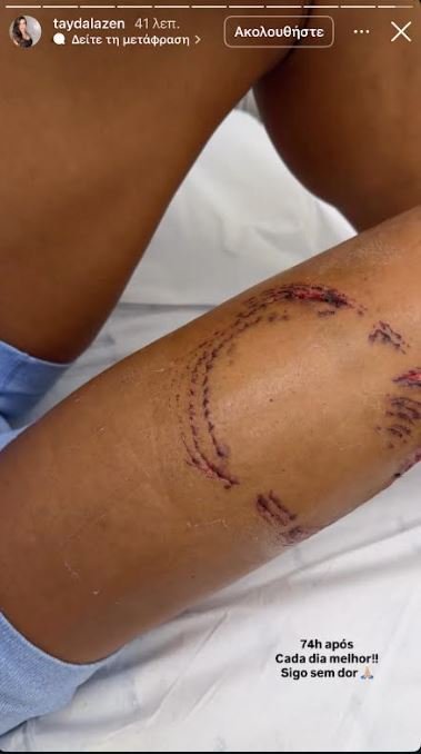 Αν και η ίδια δήλωσε ότι το δάγκωμα δεν ήταν πολύ βαθύ, οι φωτογραφίες που κοινοποιήσε δείχνουν αρκετές ουλές στο πόδι της από τα δόντια του καρχαρία.